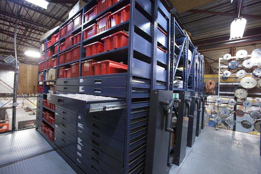 Aproveche al máximo el espacio de almacenamiento de su nave industrial. Con el sistema de almacenamiento móvil asistido RACK&ROLL 16MA, usted puede recuperar la mitad o más de su espacio útil o duplicar su capacidad de almacenamiento en el mismo espacio.